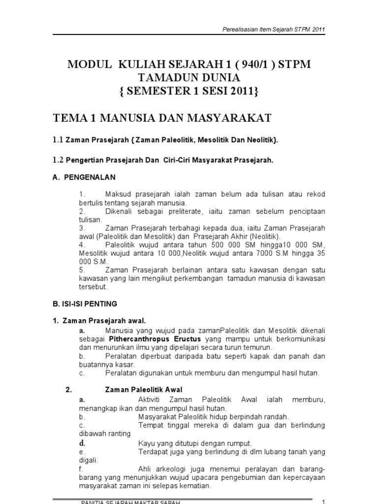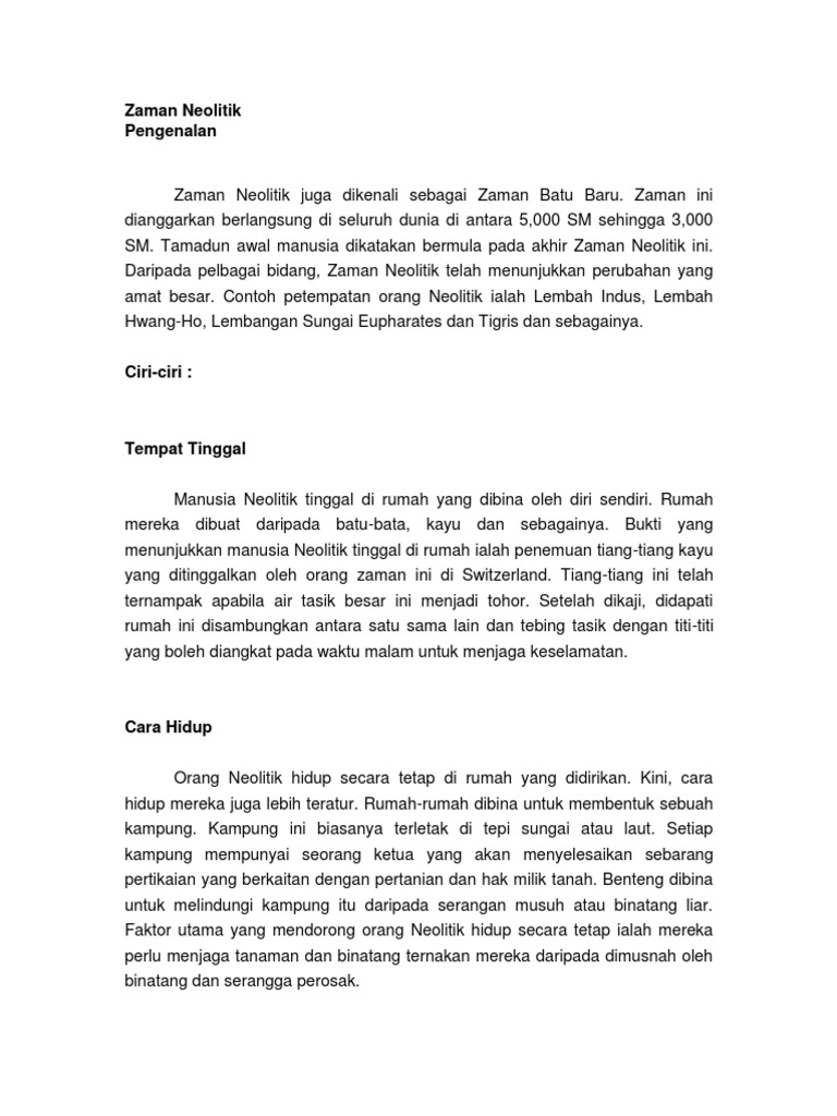 Https Gurubesar My Wp Content Uploads 2019 01 Nota Sejarah Ting 1 12 24 Pdf from Zaman mesolitikum atau disebut juga dengan zaman batu tengah/madya yang berlangsung pada masa kala holosen. Hal ini berbanding lurus dengan proses pengembangan. Walaupun begitu dengan hadirnya aman pada zaman paleolitikum, manusia purba berpindah pindah tempat yang disebut nomaden. Zaman mesolitikum merupakan zaman batu tengah/madya atau peralihan antara zaman paleolitikum dengan neolitikum. Ada pembagian lagi pada zaman prasejarah tersebut. Zaman mesolitikum merupakan periode zaman batu yang terjadi setelah zaman paleolitikum. Pada artikel kali ini akan dibahas mengenai zaman mesolitikum, zaman dimana manusia sudah mampu bercocok tanam meski dengan teknik yang sangat sederhana. Zaman mesolitikum ini diperkirakan berlangsung di 10.000 tahun silam (periode holosen).