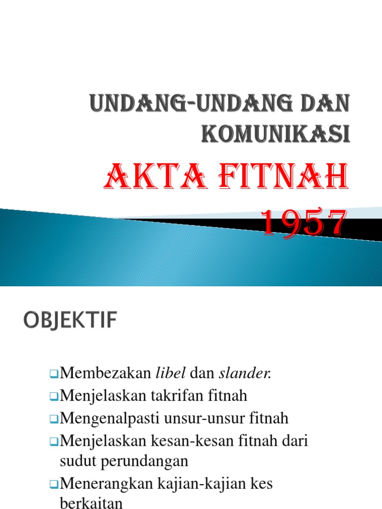 This can be especially useful to help you decide if the book is worth buying Sharifah aini didakwa memfitnah siti nurhaliza sekian, terima kasih zaifa raziya amir ai40938 mohamad adli bacho a140919 perlembagaan persekutuan. Fitnah dalam bentuk slander dikatakan melibatkan deria pendengaran. Namun begitu bukan semua yang didengar itu adalah slander memandangkan dalam akta fitnah 1957, siaran radio dianggap. Adakah akta fitnah 1957 yang ditubuhkan sebelum wujudnya alam siber boleh digunakan sebab asas pendakwaan?